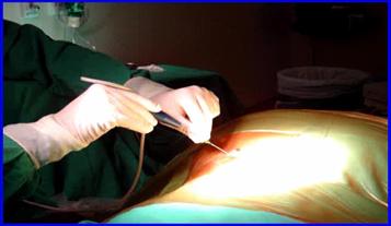 2.- Paciente de 45 años, con HNP L5 – S1 derecha que no respondió a tratamiento conservador, por 6 semanas, se realizó Nucleotomía Percutánea Automatizada con Apoyo Artroscópico, con lo que se resolvió el problema y volvió a trabajar a los 10 días.