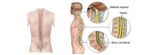 La columna vertebral proporciona soporte estructural al tronco y rodea y protege la médula espinal. La columna vertebral también proporciona puntos de unión para los músculos de la espalda y para las costillas. Unos cartílagos denominados discos vertebrales, situados entre una vértebra y la siguiente, tienen la función de absorber los impactos durante actividades tales como caminar, correr y saltar, permitiendo la flexión y extensión.