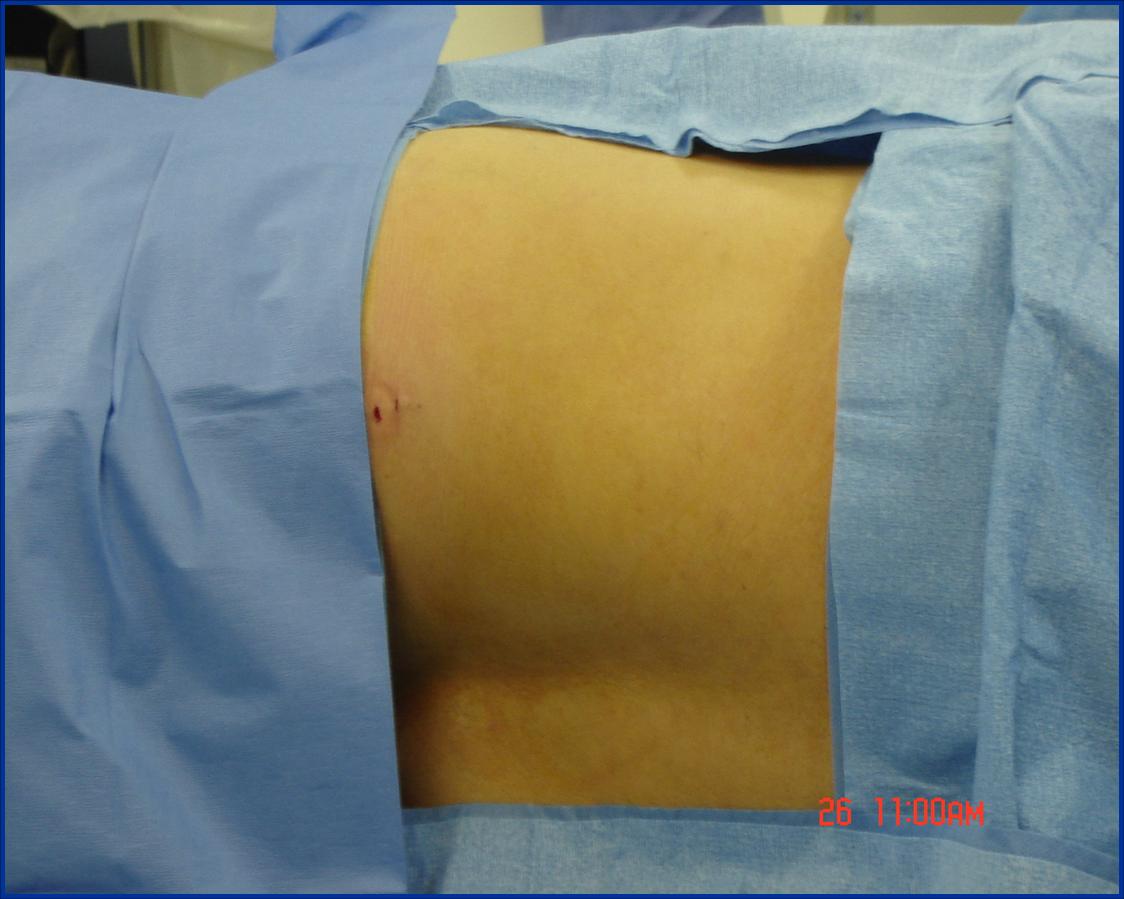 2.- Paciente de 45 años, con HNP L5 – S1 derecha que no respondió a tratamiento conservador, por 6 semanas, se realizó Nucleotomía Percutánea Automatizada con Apoyo Artroscópico, con lo que se resolvió el problema y volvió a trabajar a los 10 días.