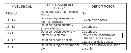 Las hernias de columna dan manifestaciones muy distintas de acuerdo al nivel en que se producen. Si viene cierto, las más frecuentes son en la columna lumbar baja, pero también pueden existir en la columna toráxico y en la región lumbar alta y media. A continuación se detallan la ubicación del dolor y el compromiso neurológico según nivel.